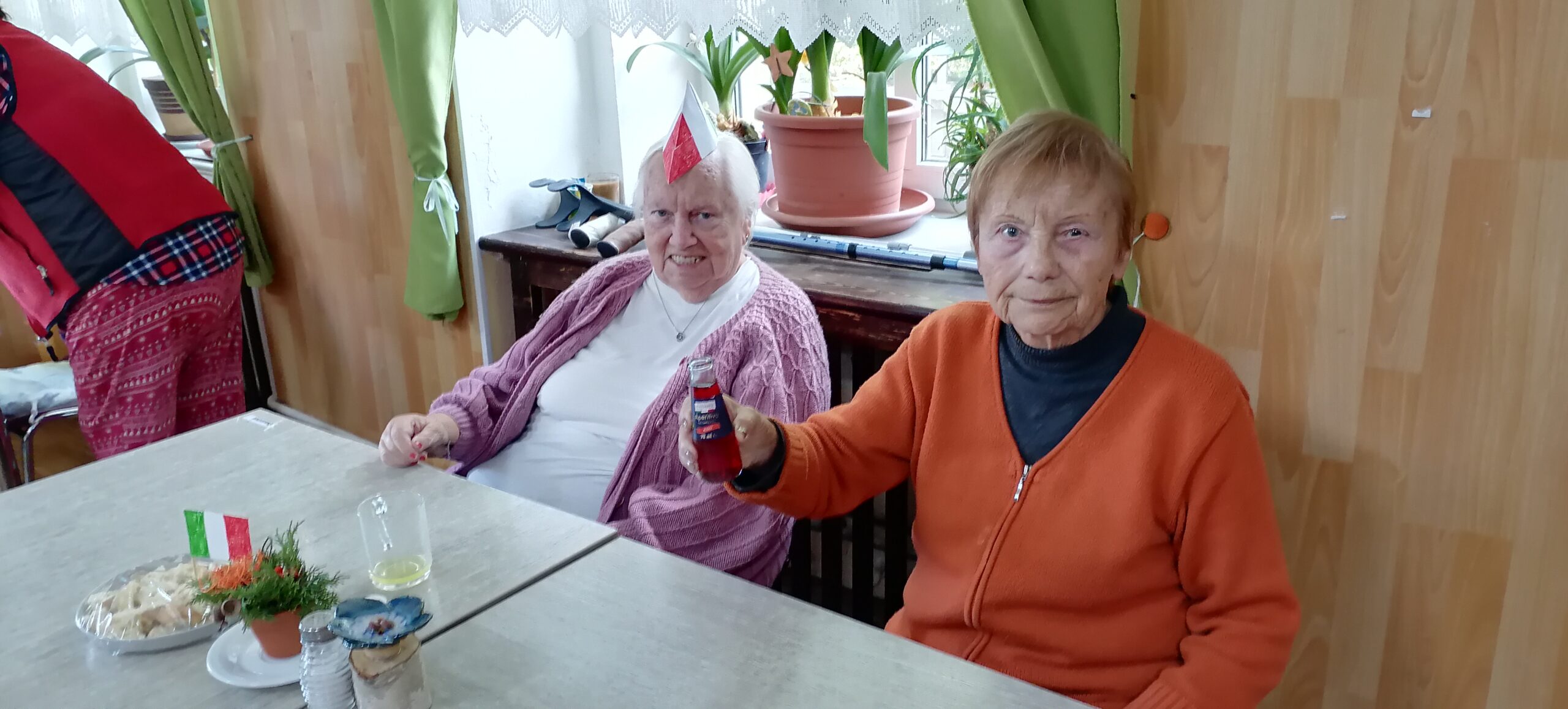 Dnes hned po ránu jsme se dozvěděli od děvčat z aktivizace, že nás čeká Italský den. I na jídelním lísku jsme viděli, že jídlo je o malinko jiné než v kterýkoli běžný den. Dopoledne začalo přednáškou a povídáním o Itálii, kde jsme se dozvěděli o památkách, městech, historii i územním rozdělení této země. Dále jsme si povídali o významných osobnostech jako například o Leonardu da Vinci a jeho proslulém obrazu Mony Lisy. Také jsme vzpomenuli na herce, zpěváky jak populární hudby, tak i operních pěvců. Po dobrém italském obědě nás čekala ochutnávka různých surovin. Itálie je proslulá pizzou, olivami, špagetami a zejména vínem. Aktivizační pracovnice nám na odpoledne připravily na ochutnávku sýry, salámy, sladkosti a zeleninu. Zmínka byla také o italské zmrzlině, která je známá i u nás. K poslechu jsme si pouštěli známé italské písně, které známe z mládí. Tato země má své kouzlo a někteří z nás jsme tuto zemi navštívili jak pracovně tak i rekreačně. Den se vydařil a bylo nám příjemně.