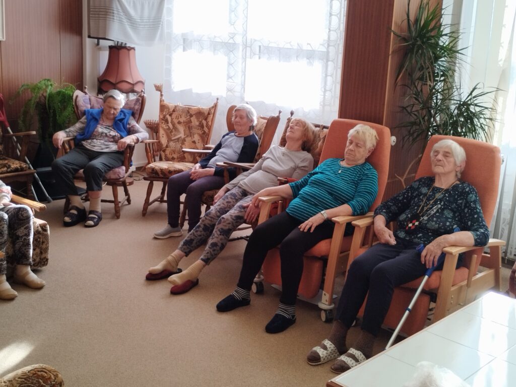 Tento týden jsme zkusili pojmout trochu jinak než jsme zvyklí. Spojili jsme pánský a dámský klub. V pánském klubu si pánové užili něco sportovních přenosů a zavzpomínali v mnoha případech na své sportovní úspěchy, kdy byli aktivními sportovci a ne jen těmi pasivními u televizních přijímačů. A co dámy? Ty si tentokrát nezkoušely paruky, ani si nelakovaly nehty, ale zkusily si uvést do praxe pojem relaxace, kdy se sešly ve společenské místnosti v pohodlných křeslech, pustily si jemné tóny instrumentální hudby a rozjímaly a odpočívaly. A tak to má být.