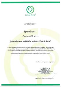 Naše společnost se zapojila do projektu Zelená firma a umožňuje tak svým zaměstnancům bezplatně odevzdat vysloužilá elektrozařízení, baterie a akumulátory. Zároveň je tím bez nutnosti cesty na speciální místo zpětného odběru podporujeme v ekologickém chování a s tím související recyklací, při které se mění odpad na znovu použitelný materiál. Vysloužilé elektrospotřebiče z domácností a baterie mohou zaměstnanci jednoduše odkládat do sběrného boxu, který je umístěn v Unhošti, Praze a Zruči nad Sázavou. Projekt naší firmě také umožňuje bezplatný svoz a následnou recyklaci velkého elektroodpadu. Cílem projektu Zelená firma je ochrana životního prostředí zabezpečením zpětného odběru a efektivní recyklace nepotřebných elektrozařízení. Ta obsahují mnohé nebezpečné látky, jako je například rtuť, olovo, kadmium či brómované zpomalovače hoření, ale také velké množství recyklovatelných a znovu využitelných materiálů. Iniciátorem projektu jsou společnosti REMA, které se specializují na organizaci sběru, třídění a recyklaci vysloužilých elektrozařízení, přenosných baterií a akumulátorů v celé České republice.