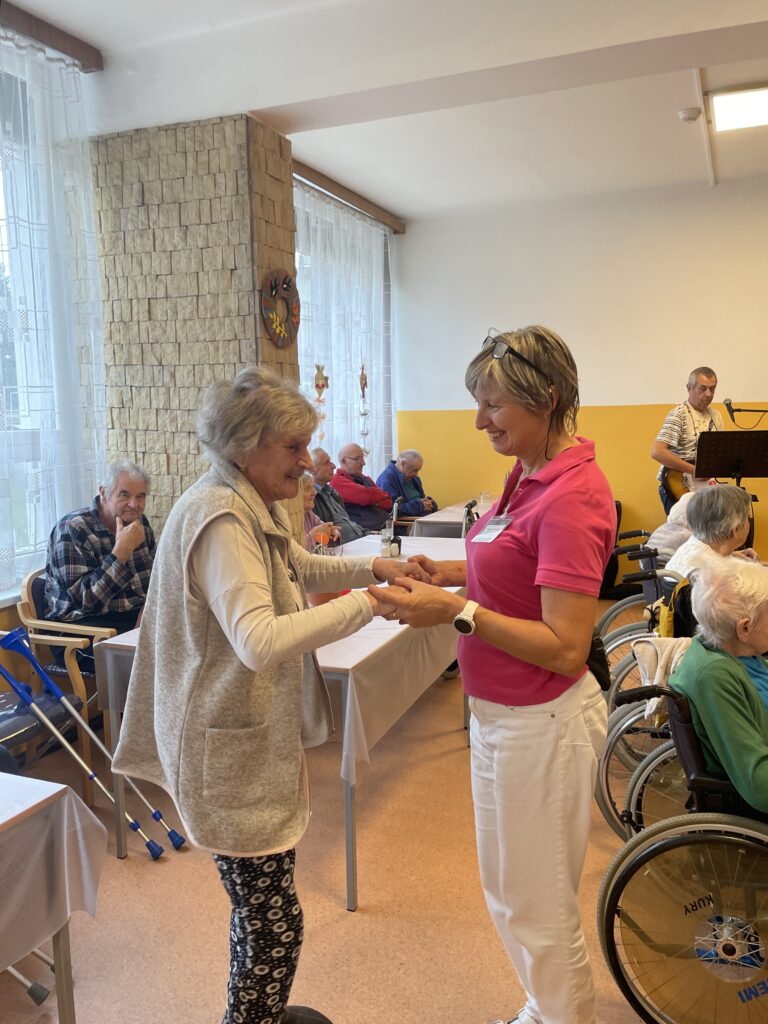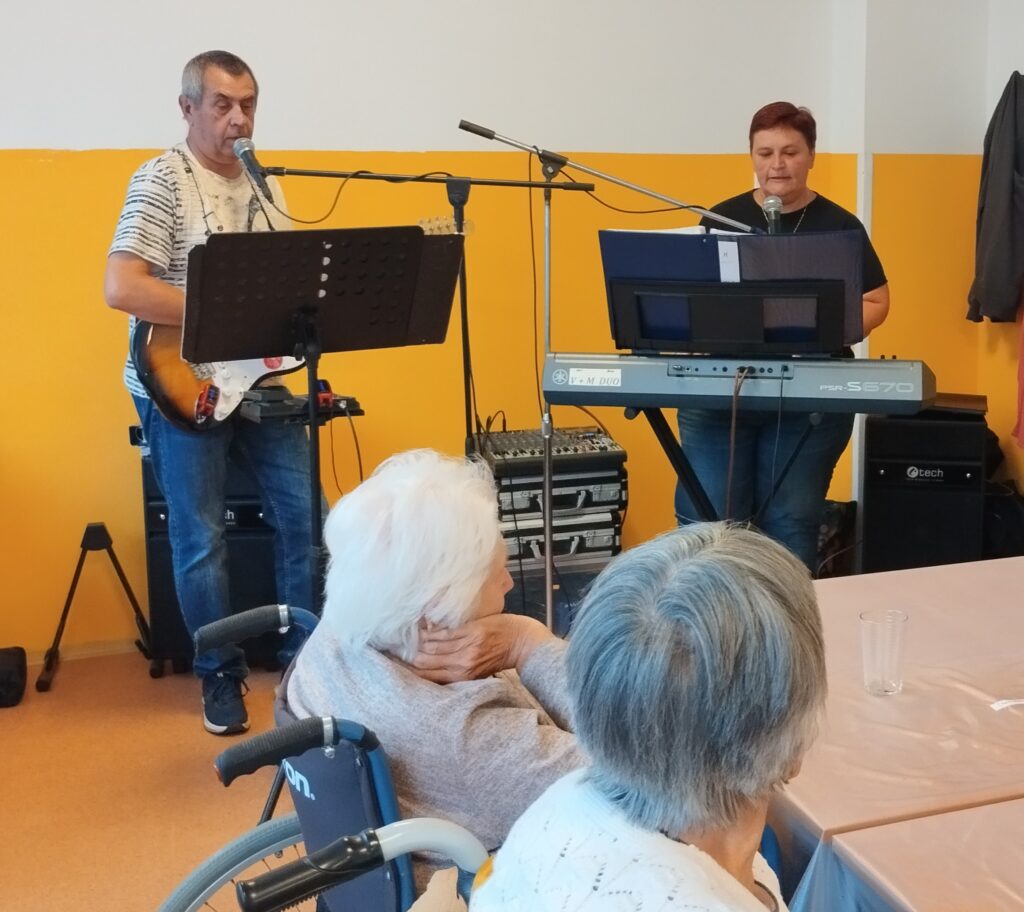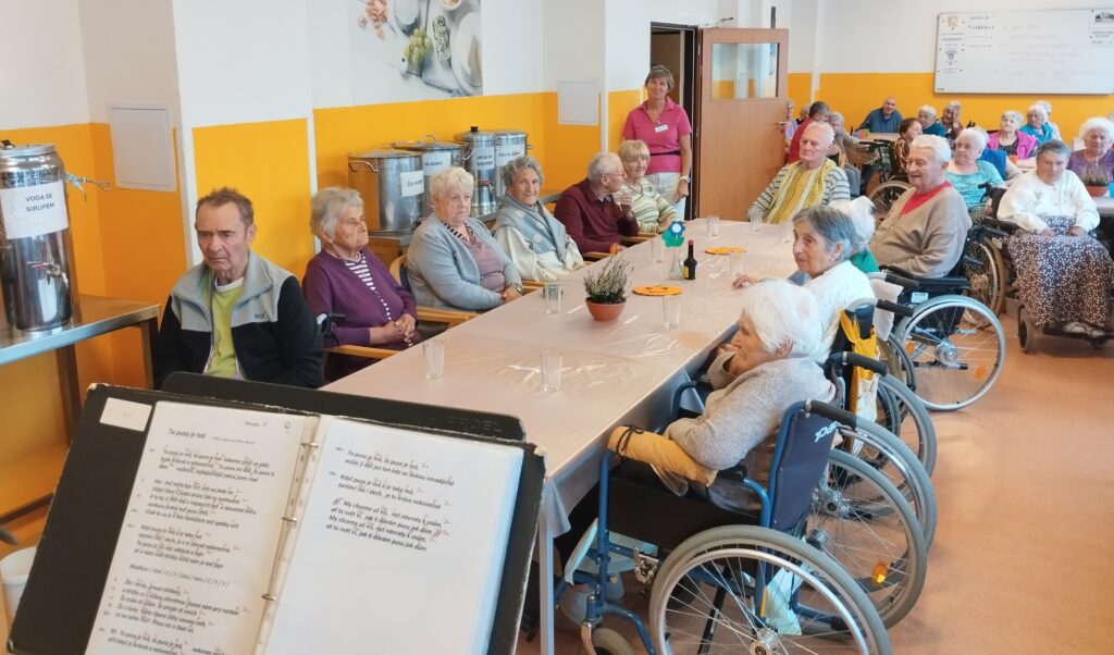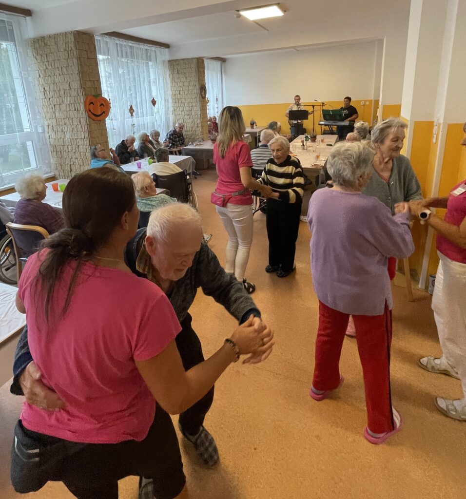 Léto nám definitivně dalo najevo, že jeho vláda končí, naopak podzim se velmi důrazně přihlásil o svůj čas – vše je tak, jak má být a my se už pravidelně každým rokem loučíme s létem, i když by se dalo říci, že slavíme příchod podzimu. Prostě nikdy ,,nesmí býti smutno“ a nebo ,,pořád je, co slavit“ – taková hesla jsou nám blízká. Proto jsme si pozvali opět naši milou kuchařku Martinu, která společně se svým parťákem Vaškem dokáže naladit notu na tu správnou vlnu. Zazpívali jsme si s nimi nejen písničky táborákové jako např. Dajána, ale i ty naše oblíbené lidové. A samozřejmě nesměl chybět tanec, protože po létě jsme všichni pěkně rozhýbaní a rozehřátí, a tak to jde samo. A jaká by to byla oslava bez občerstvení – k podzimu patří ohýnek a k němu buřty a pivo. My jsme sice ohýnek neměli, ale buřty od našich milých kuchtíků byly skvostné.