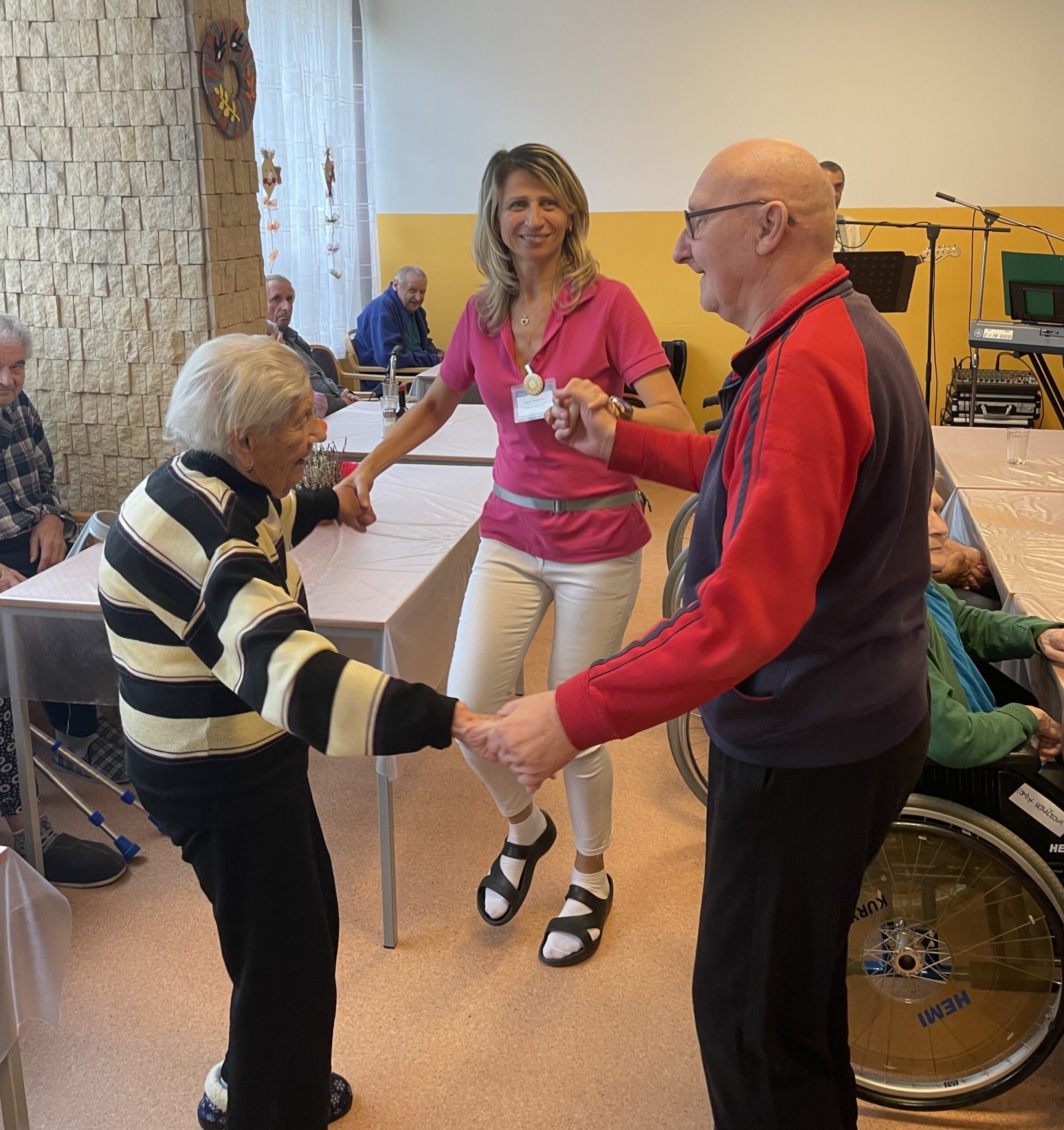 Léto nám definitivně dalo najevo, že jeho vláda končí, naopak podzim se velmi důrazně přihlásil o svůj čas – vše je tak, jak má být a my se už pravidelně každým rokem loučíme s létem, i když by se dalo říci, že slavíme příchod podzimu. Prostě nikdy ,,nesmí býti smutno“ a nebo ,,pořád je, co slavit“ – taková hesla jsou nám blízká. Proto jsme si pozvali opět naši milou kuchařku Martinu, která společně se svým parťákem Vaškem dokáže naladit notu na tu správnou vlnu. Zazpívali jsme si s nimi nejen písničky táborákové jako např. Dajána, ale i ty naše oblíbené lidové. A samozřejmě nesměl chybět tanec, protože po létě jsme všichni pěkně rozhýbaní a rozehřátí, a tak to jde samo. A jaká by to byla oslava bez občerstvení – k podzimu patří ohýnek a k němu buřty a pivo. My jsme sice ohýnek neměli, ale buřty od našich milých kuchtíků byly skvostné.