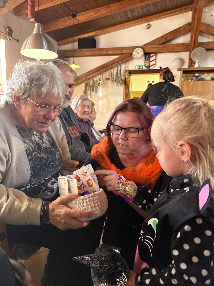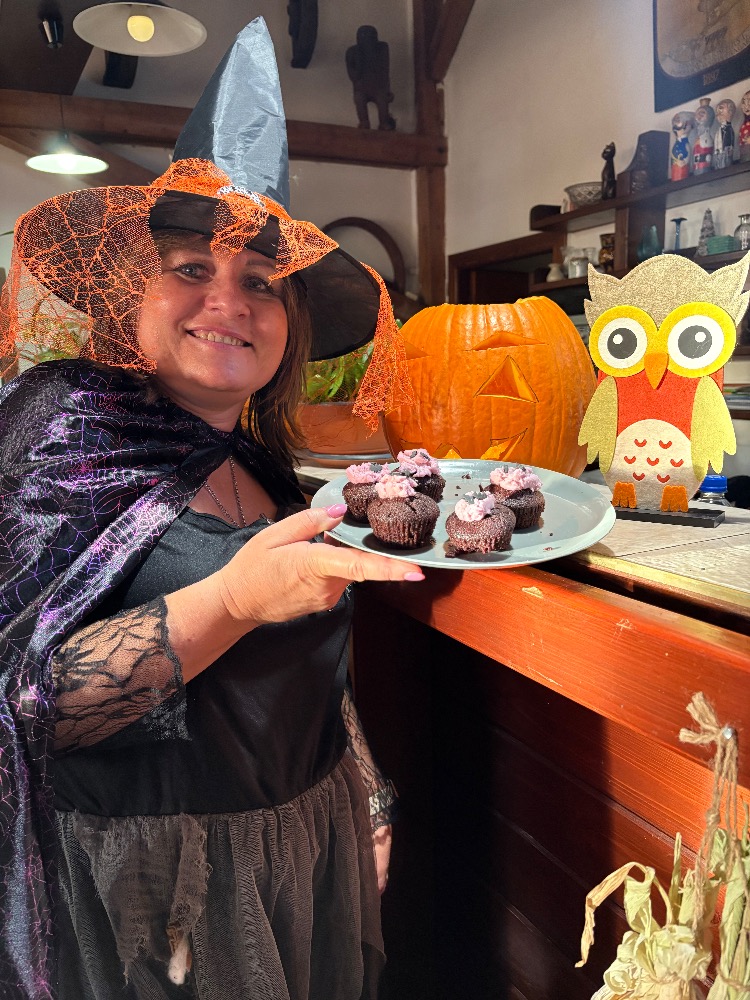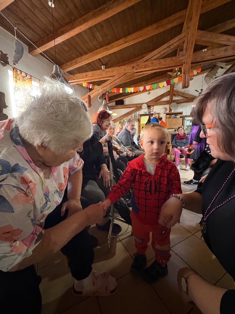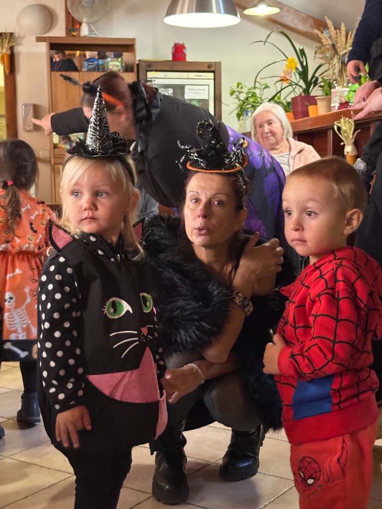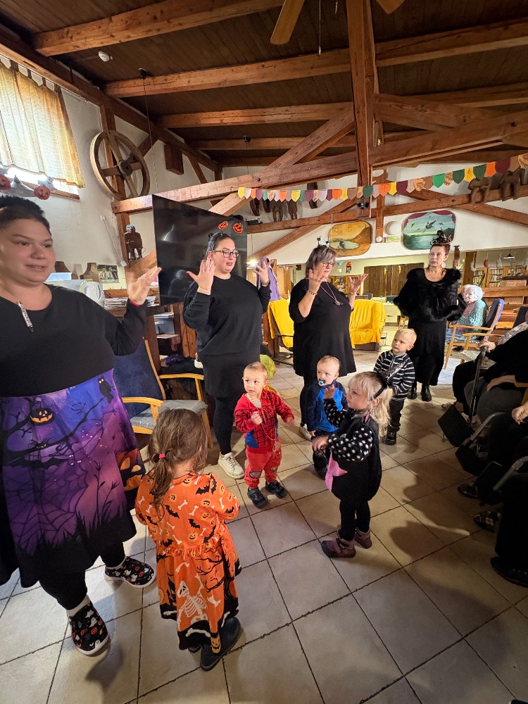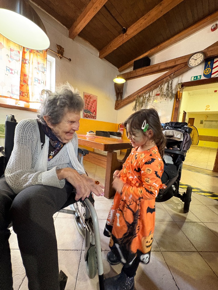 Dnes se uskutečnilo halloweenské mezigenerační setkání, navštívily nás děti z DS Mlýnek. Přišly se nám ukázat v maskách, které měly přichystané. Potkali jsme zde čarodějnou princeznu, kočičku, ale také Spider-Mana. Naše aktivizační pracovnice vyzdobily chodbu oranžovými fáborky, které děti navedly až k nám na aktivizační místnost, kde nám děti ukázaly jejich ranní pozdrav, zahrály si spolu s námi a tetami ze školky zajíčka v své jamce a také si s námi zazpívaly, nakonec jsme si přečetli pohádku o čarodějnici a kouzelné dýni. Některé děti nám půjčily i svoje kloboučky, což nás velice potěšilo. Děti si u nás dokonce vykoledovaly i nějaké ty dobroty a plyšáky. Všichni jsme byli ze setkání nadšeni a těšíme se na další. Odpoledne jsme vydlabávali dýně a pan Karel je všechny nádherně vyřezal, ještě jsme si dali výborné halloweenské muffiny, které jsme dopoledne upekli.