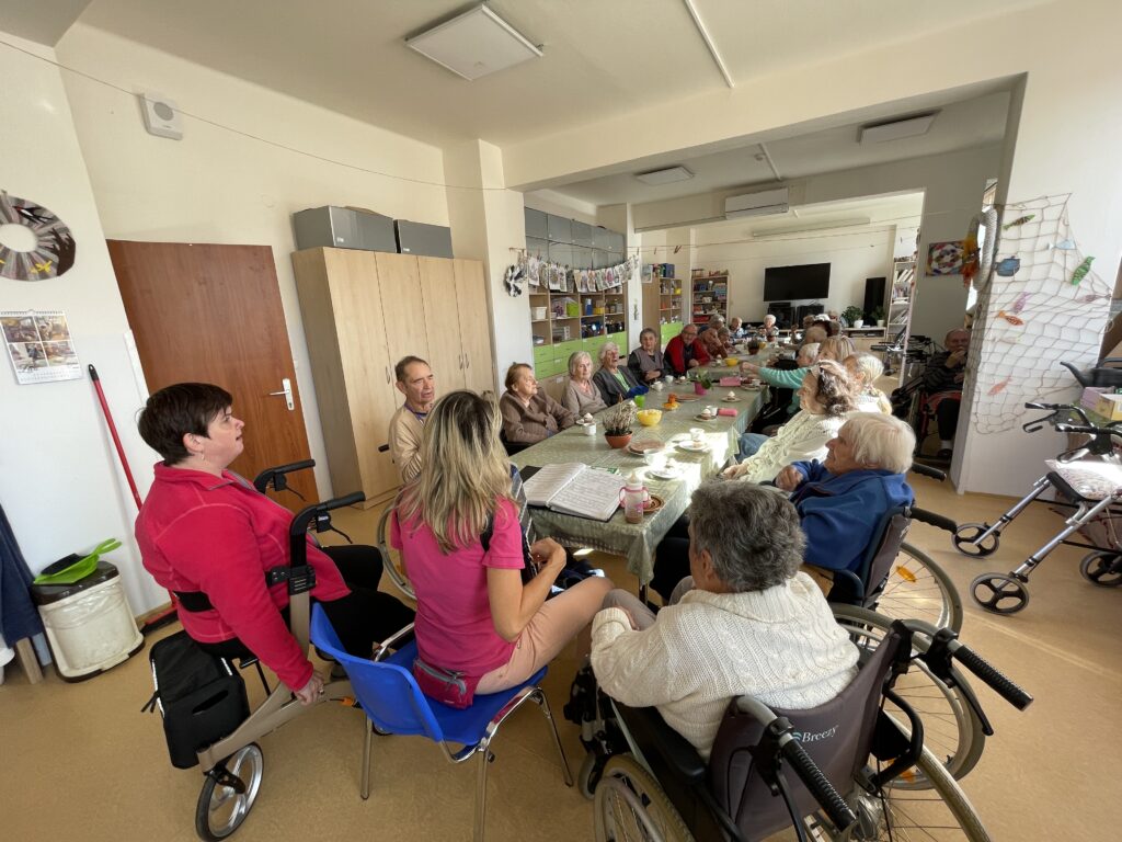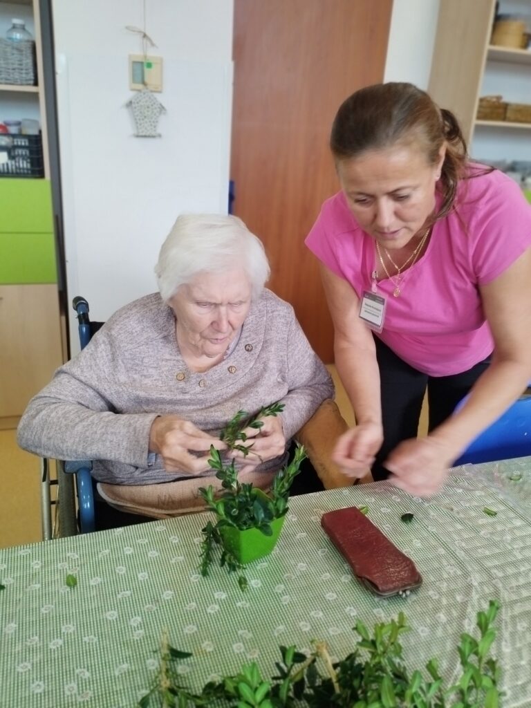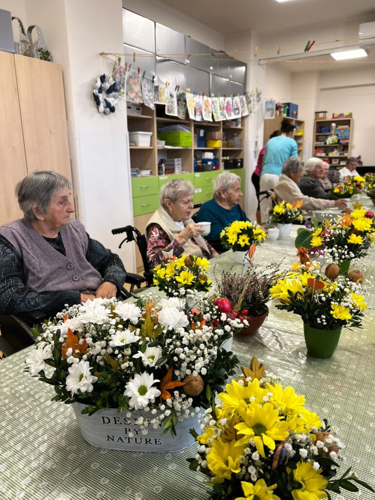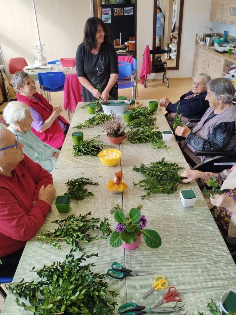 Protože si v našem domově potrpíme na dodržování tradic a významných dnů, nebylo tomu jinak ani tentokrát. A nešlo o nic menšího než oslavu Mezinárodního dne seniorů. A když, tak důkladně a s předstihem! Začali jsme totiž už v úterý, třicátého září, kdy jsme se sešli, abychom si užili odpoledne s harmonikou za zpěvu krásných lidových písní, které všichni známe. A protože to není jen tak „nějaký“ den, opravdu nic jsme nepodcenili a upekli si muffiny s čokoládou, které jsme ještě ozdobili lahodným šlehačkovo-tvarohovým krémem! Zároveň jsme na recepci našeho domova vystavili naše výrobky, protože se zároveň v našem domově konal den otevřených dveří k příležitosti Týdne sociálních služeb. Ve středu mezi nás v odpoledních hodinách přišla květinářka Anička a my jsme si s ní vytvořili krásné květinové podzimní aranžmá k ,,našemu svátečnímu dni“. A opět jsme vše doplnili poslechem příjemných melodií, tentokrát populárně tanečního rázu za doprovodu klávesových nástrojů. Poseděli jsme si v příjemné společnosti, něco hezkého vytvořili a pohladili duši a srdce. A tak to má být.