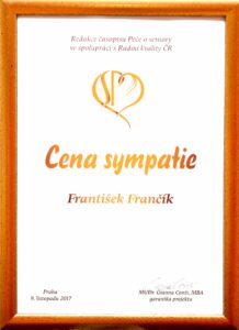 „Cílem projektu je hledat, podporovat a každoročně morálně oceňovat ty jednotlivce a instituce, kteří v této náročné době vytvářejí komfortní prostředí a stabilní zázemí pro uživatele všech typů sociálních služeb. Výjimeční jsou poskytovatelé zejména tehdy, když svým postojem k práci potvrzují, že kvalita je především v profesionalitě a osobním přístupu.“ Cenu sympatie ve 12.ročníku Ceny kvality získal pan František Frančík, vedoucí přímé péče v domově pro seniory a domově se zvláštním režimem Centrin Praha!