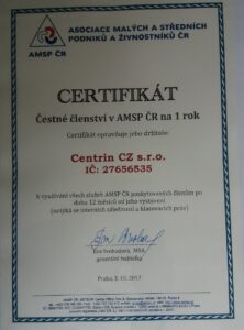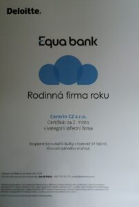 Cílem ocenění Equa bank Rodinná firma roku je ocenit, podpořit a motivovat firmy v rodinném podnikání. Soutěž organizuje pravidelně každý rok Asociace malých a středních podniků a živnostníků ČR (AMSP ČR). Společnost Centrin CZ s.r.o. se umístila na krásném 2.místě soutěže Equa bank Rodinná firma roku 2017!
