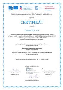 Dne 19.11.2014 proběhl dobrovolný audit určený pro vzdělávací instituce, které nabízejí vzdělávací programy akreditované MPSV. Inspektoři FDV se shodli, že díky odpovědnému přístupu a vhodnému propojení vzdělávání s poskytováním sociálních služeb patří společnost Centrin CZ s.r.o. jako vzdělávací instituce jednoznačně mezi příklady dobré praxe.