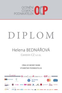 V pátém ročníku Ocenění českých podnikatelek si zvláštní cenu generálního partnera soutěže společnosti GE Money Bank – Výjimečná podnikatelkaodnesla jednatelka společnosti Centrin CZ s.r.o. Mgr. Helena Franclová (dříve Bednářová).