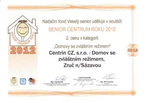 V loňském roce byl domov pro seniory Centrin Zruč nad Sázavou oceněn jako druhé nejlepší zařízení v České republice v soutěži Senior centrum roku 2012 v kategorii Domov se zvláštním režimem.
