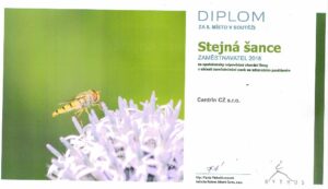 V úterý 21. února 2017 proběhlo na Krajském úřade Středočeského kraje vyhlašování 7. ročníku Stejná šance – Zaměstnavatel roku 2016. Jedná se o prestižní soutěž zaměstnavatelů, kteří lidem se znevýhodněním dávají na otevřeném pracovním trhu stejnou šanci jako ostatním a tím aktivně přispívají k jejich začleňování do společnosti. Společnost Centrin CZ s.r.o. se umístila na krásném 4. místě! V roce 2018 jsme získali diplom za 8.místo.