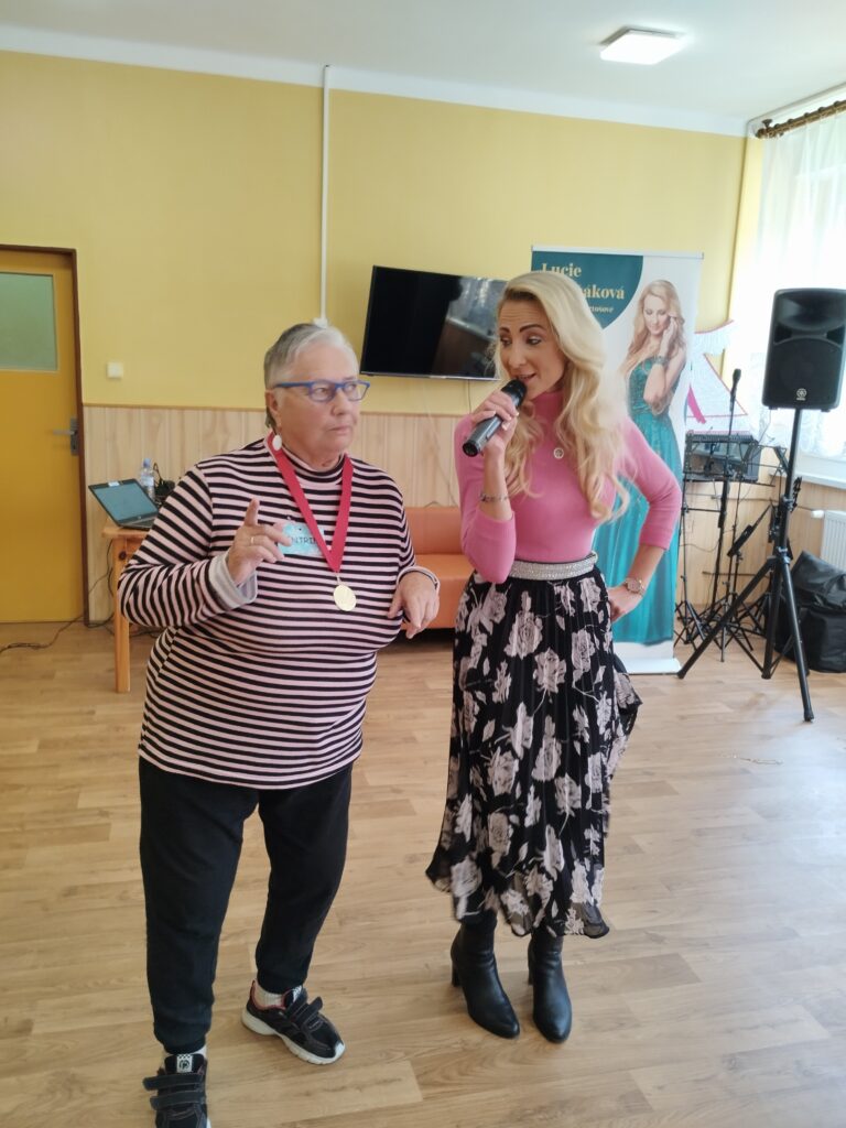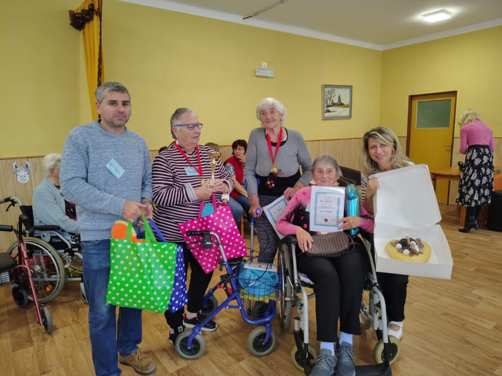 Také stojí za zmínku akce, které jsme se účastnili ve čtvrtek 2.října 2025. Oč šlo? O sportovní hry v Jankově, kam jsme rádi přijali pozvání. Hry se, podobně jako v domově ve Vlašimi, kterých se také zúčastňujeme, konají každý rok a nejinak tomu bylo i letos. A tak náš domov Centrin ve Zruči utvořil tříčlenné družstvo a vyrazil reprezentovat. Nechybělo bohaté občerstvení, hudební vystoupení zpěvačky Lucie Třešňákové a pestrá skladba soutěžních disciplín, které byly zaměřené hlavně na jemnou a hrubou motoriku a úchopové funkce. Poté následoval lahodný oběd, který sestával ze smaženého řízku a bramborového salátu. A jak to celé dopadlo? Náš domov Centrin ze Zruče nad Sázavou VYHRÁL a přivezl domů slavnostní pohár a lahodný dort a spoustu dalších milých upomínkových předmětů, které dostal každý člen soutěžního družstva. Co k tomu dodat? Přijeli jsme domů s vavříny, ale hlavně s pocitem velké radosti, štěstí a krásných zážitků a prožitků, na které budeme dlouho vzpomínat. A tak to má být.