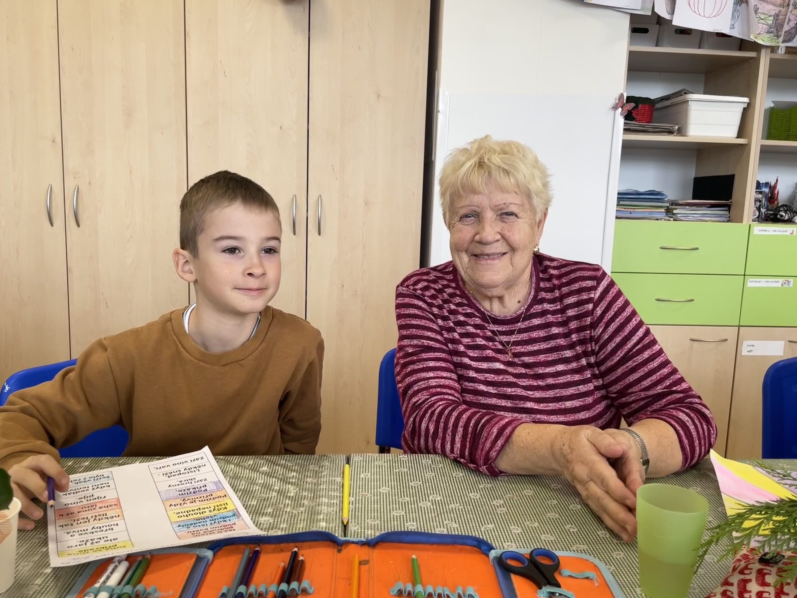 V poslední době k nám dochází na mezigenerační setkání nejen děti z mateřských škol, ale také ze škol základních. V tomto týdnu to byli žáci třetího ročníku základní školy Na Pohoří. Se svou paní učitelkou k nám již chodí pravidelně. Tentokrát jsme společně nejprve procvičovali kognitivní funkce pomocí přísloví a obrázků s podzimní tematikou. Poté jsme ale vyndali společenské hry a to teprve začala zábava! Napětí při hře a touha vyhrát je společná napříč generacemi. Takže se při hře Člověče, nezlob se statečně vyhazovalo, při hře Double vykřikovalo, při hře Tik tak bum bouřlivě povzbuzovalo. Nálada byla výborná. Když nám sestřička oznámila, že už je čas oběda, nechtělo se nám nikomu věřit, jak nám to společně uteklo. A proto jsme se ihned domluvili na dalším společném setkání ještě před Vánoci, kdy bychom si rádi dali odvetu.