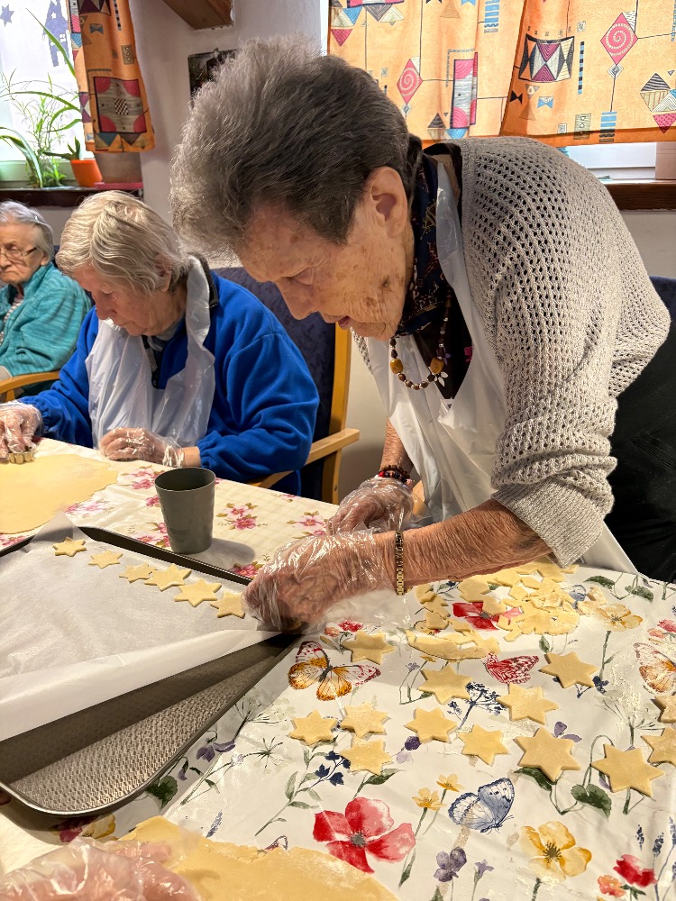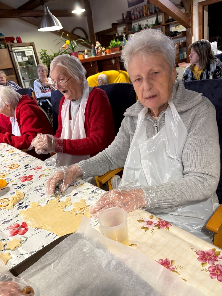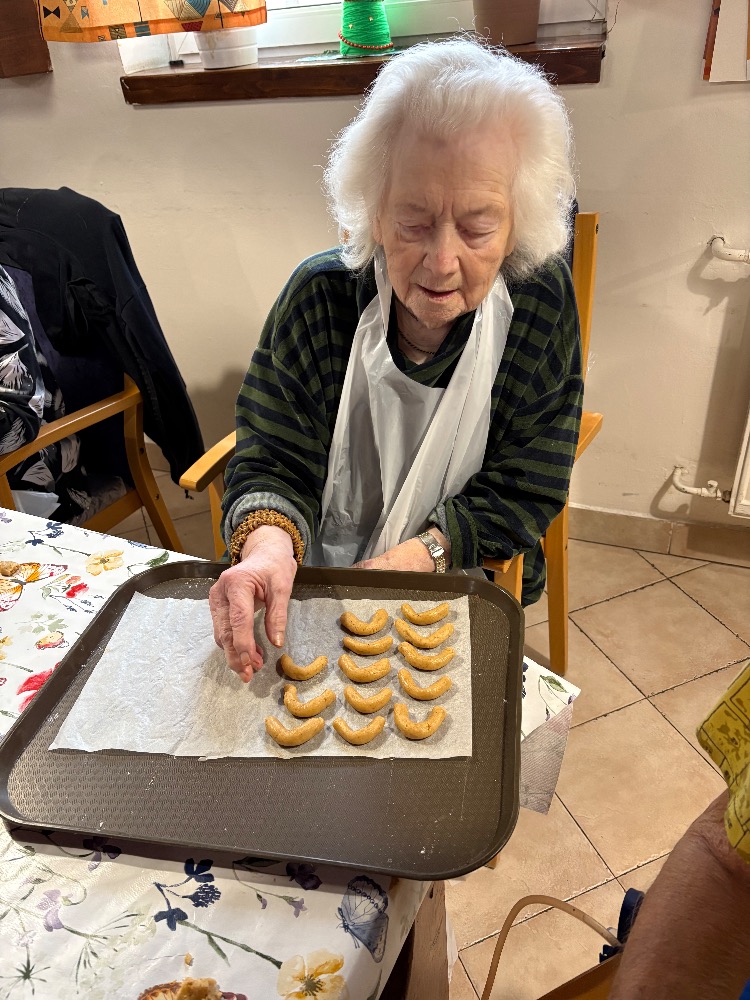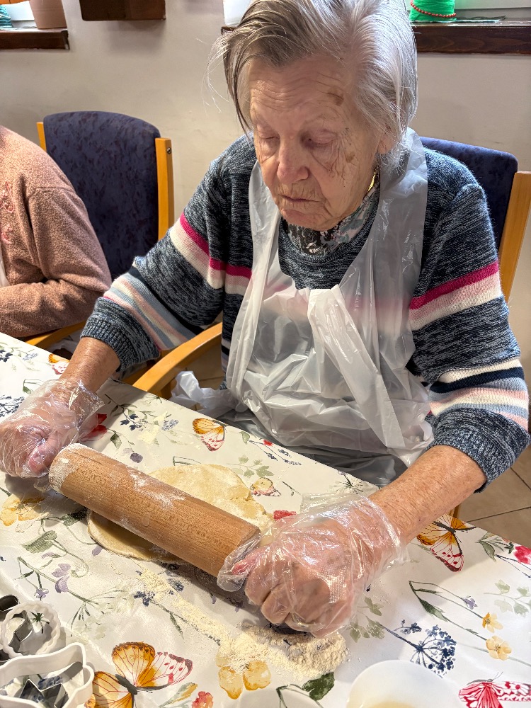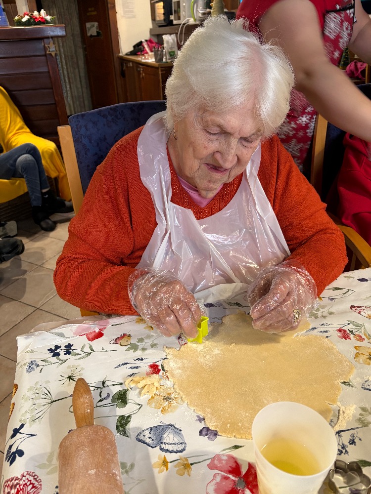 Kouzelnou tradicí pro nás stále zůstává vánoční pečení. Na aktivizační místnosti jsme se dnes sešli, abychom se podíleli na přípravách na Vánoce a pečení je jedna z nich. Stoly nachystané, těsta i válečky leží na nich a nám už jen zbývá vyhrnout si rukávy a umýt si ruce. Jdeme na to! Jedna válí, druhá vykrajuje, třetí dává na plech a co z toho bude? Ano, začali jsme lineckým cukrovím. Potom jsme pokračovali vykrajováním z kakaového těsta a dnešní den jsme zakončili tvořením rohlíčků. Můžeme i říct, že rohlíčky nám daly zabrat, mnohdy to vypadalo jako modelářská práce. V průběhu týdne budeme ještě mazat džemem a zdobit čokoládou. U nás už nejde o recepty či tvoření něčeho nového, ale o vzpomínku na nezapomenutelné chvíle s rodinou. Přejeme vám krásný a klidný čas předvánoční.