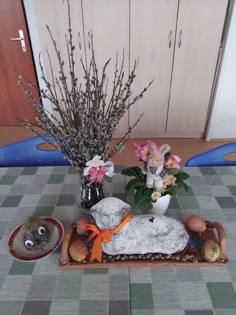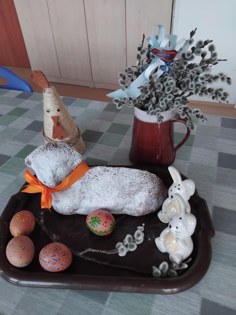 Tento týden jsme se zaměřili na další tradiční velikonoční symbol, a sice velikonočního beránka, kterého jsme si dopoledne upekli v naší kuchyňce v rámci terapie pečení. Co má symbolizovat? Jednak příchod jara a nový život, ale také jde o symbol pověstného „obětního beránka,“ kdy byl, namísto syna, obětován právě skopec. A když už jsme byli v tom pečení, došlo i na vyprávění, co znamenají jednotlivé dny velikonočního týdne a jaké se k nim váží další tradice a zvyky – Květná neděle, Modré pondělí, Žluté úterý, Škaredá středa, Zelený čtvrtek,Velký pátek a Bílá sobota. Něžná část obyvatelů už se těší na Velikonoční pondělí, kdy nás opět přislíbil navštívit náš aktivizační pracovník Mirek s maxipomlázkou, a tak se ženy nemusí bát, že by uschly…