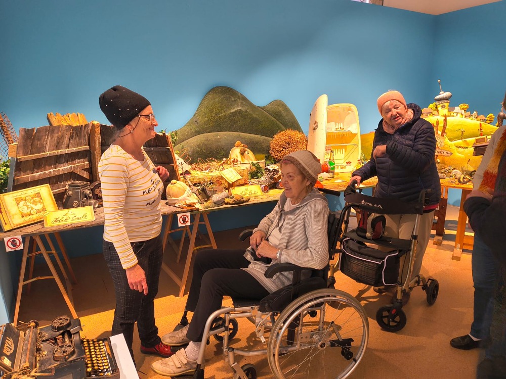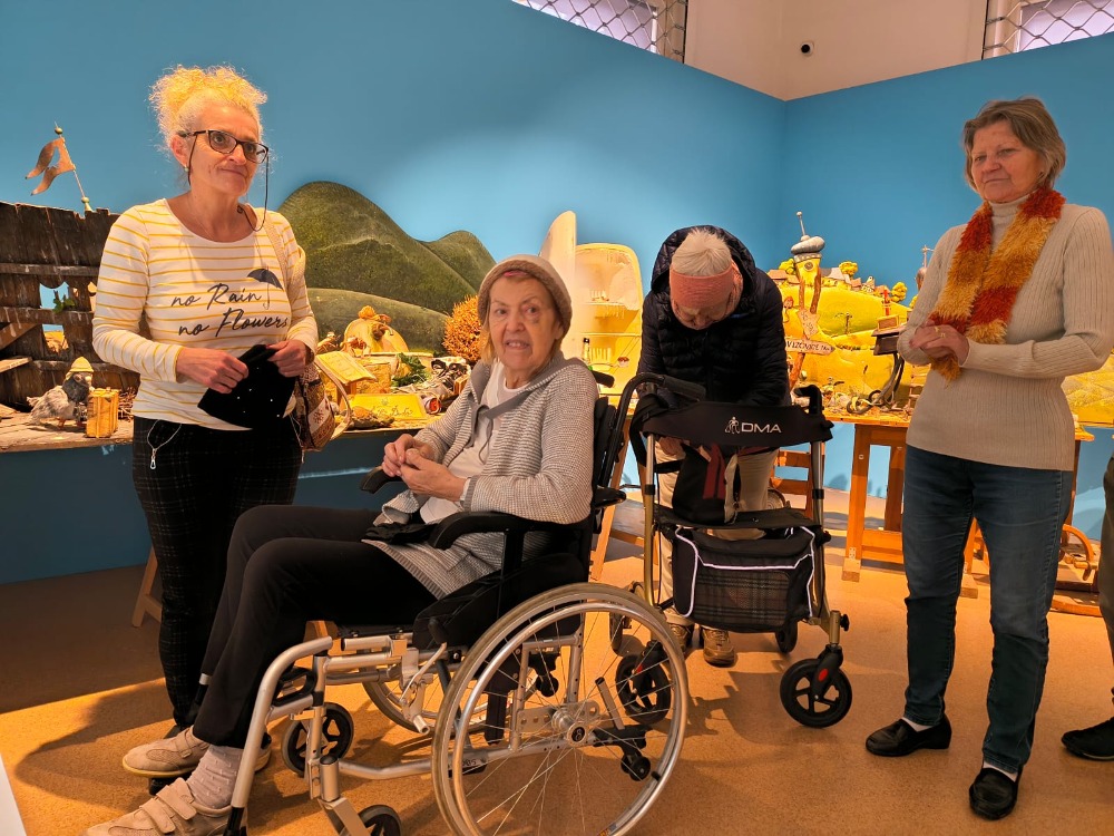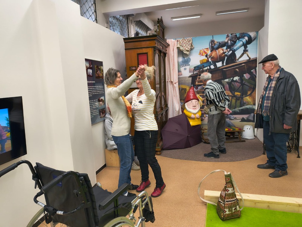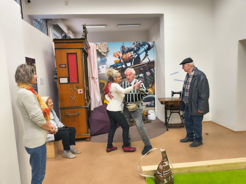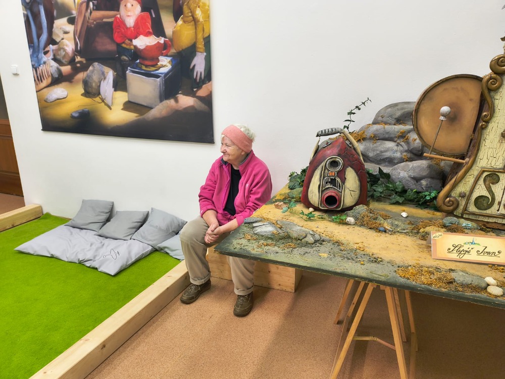 Tento týden jsme měli opravdu zajímavé dopoledne. Navštívili jsme Vlastivědné muzeum v Kladně. Po krátké procházce v zahradě jsme zamířili k nově instalované výstavě, která byla zaměřena na loutkový večerníček pro děti. K vidění byly originální loutky, scénické dekorace, návrhy kostýmů i krátké ukázky z večerníčků o třech krysách, které žijí na smetišti. Atmosféra byla velmi živá a veselá. Po expozici o večerníčcích následovala interaktivní část určená pro děti, ale my se zde bavili možná ještě více než děti. Po vhození kuličky do složitého mechanického systému bylo možno sledovat dráhu, kterou kulička projíždí. Někteří z nás to zkoušeli mnohokrát a bylo vidět, že nás to velmi baví. Poslední část muzea zabíral rozložitý 100 let starý mechanický orchestrion. Zaměstnanec muzea nám vysvětlil historii tohoto mimořádného hudebního nástroje a princip, na jakém pracuje. Obdivovali jsme zručnost a preciznost, s jakou ho naši předkové před 100 lety zkonstruovali. Na jednu z písniček si dokonce několik z nás zatančilo.