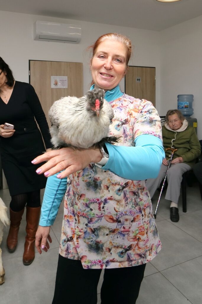 Dnes nás navštívila paní Ing. Eva Bukričová. Se svými zvířátky k nám přijela až z Benešova. Přivezla s sebou jedenáct zvířat – minihorse Froda, slepice Popelku, Janu, Honzíka a Berušku, kozu Kačenku, dvě fenky Safíru a Kleopatru a dva kocoury Čuka a Geka. Všechny jsme je po obědě přivítali v altánu. Nejprve nám paní Eva zvířata představila a po té jsme se s nimi mohli pozdravit. Některá zvířata jsme si mohli pochovat. Jak slepičky, tak i kocoury. Paní Eva posadila všechny čtyři slepičky na koníka. S sebou přivezla pro zvířata plno pamlsků, které nám rozdala a my je mohli krmit. Během krmení nám vyprávěla o tom, jak je péče o zvířata náročná. I my jsme měli spoustu dotazů. Například na váhu koně Froda, nebo kdy koze Kačence vyrostou rohy. Dozvěděli jsme se, že Frodo váží kolem 80kg a koza je bezrohá. Dále jsme se dozvěděli, jaká další zvířata chová na farmě a zazpívali jsme si písně o zvířatech. Paní Eva nám slíbila, že příště přiveze i jiná zvířata a my už se moc těšíme na její další návštěvu.